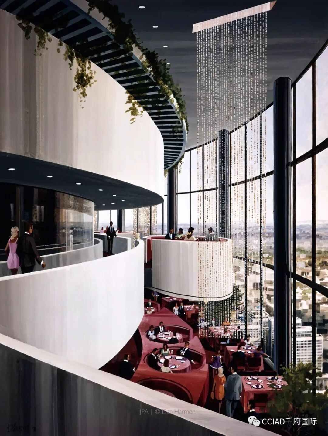 如今惯常见到的酒店、商场中好几层巨大挑空的中庭,交织的扶梯以及穿梭的观光电梯来自于20世纪中期,被誉为“中庭之父”的约翰·波特曼,他高耸的未来主义风格中庭革新了酒店设计。