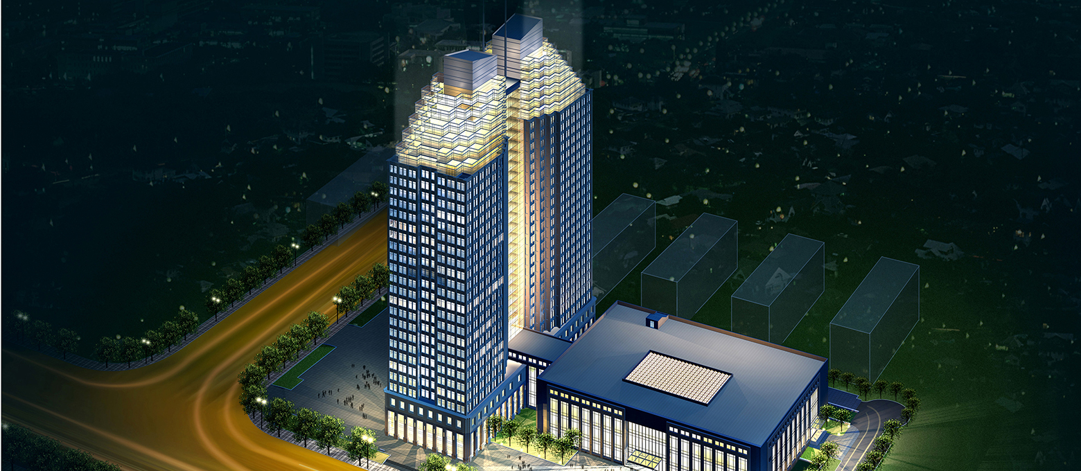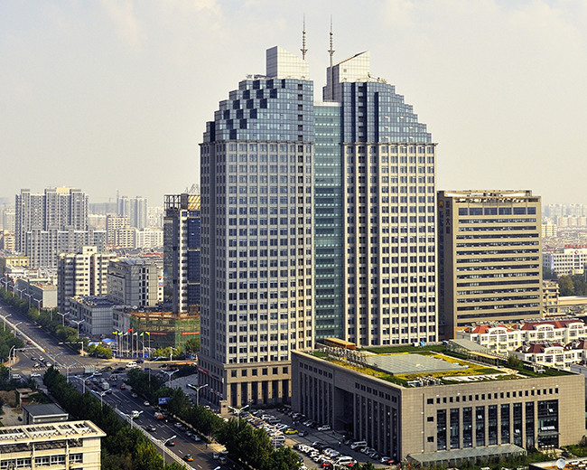 潍坊阳光大厦是政府机关集中办公和接待市民的场所,设置了3000人办公的综合楼和行政审批大厅,要求办公建筑体现文化、庄重的气氛。综合办公大楼采用双塔式设计,由地上30层,地下2层组成。行政审批大厅位于主楼南侧,内部与办公主楼在首层、二、三、四层保持联系;主入口面向东方路,在楼前设亲民广场,办事人员可通过亲民广场进入行政审批大厅;大厅内设有接待中心、信息中心、办事大厅、银行营业所、商务中心、便民超市等,为前来办事的人员提供服务。同时,一层还设有展示信息墙,可作为一个宣传窗口,向市民及国际友人展示潍坊市的城市风貌。